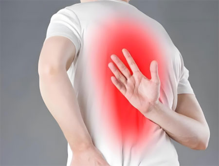 胃溃疡/十二指肠溃疡:疼痛可能放射至背部,伴上腹灼热、反酸。