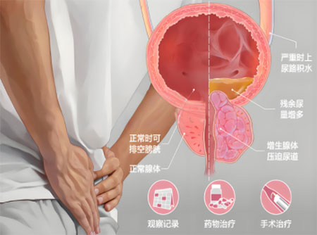 当药物效果不佳或出现并发症时(如反复尿潴留、反复血尿、泌尿系感染、膀胱结石、上尿路积水等),应考虑手术: